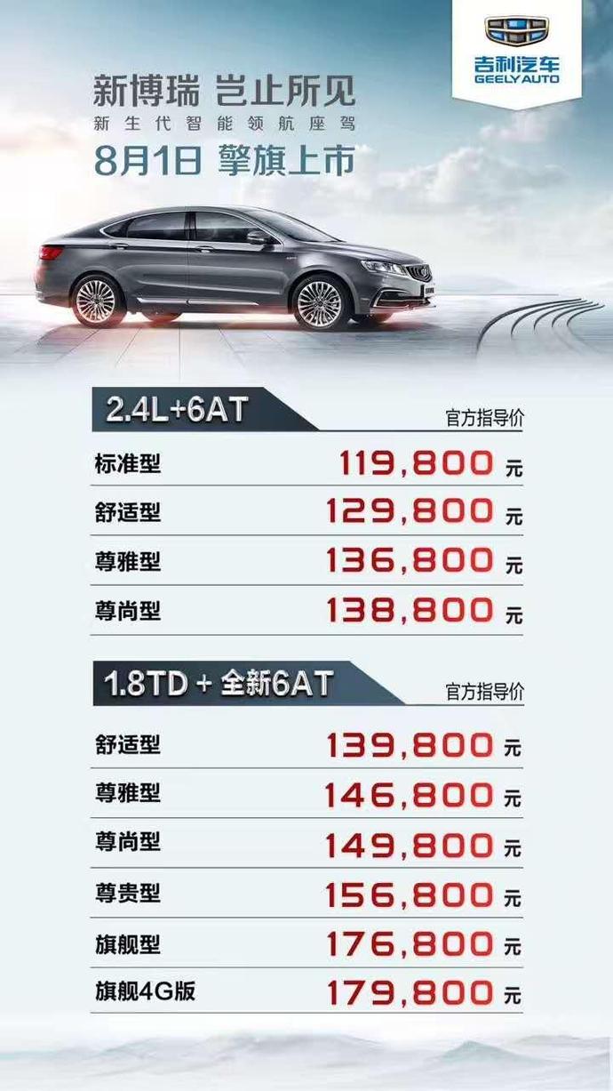 吉利博瑞的价格随着市场变化和车型升级而调整,根据最新信息,吉利博瑞的价格区间在XX万元至XX万元之间,具体价格因车型配置、地区差异以及购车政策等因素而有所变动,消费者在选择时,可以根据自己的需求和预算挑选合适的车型。