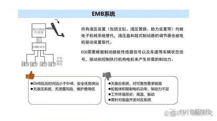 3、技术标准化问题:当前EMB技术尚未形成统一的标准,各种技术路线并行,这不利于技术的推广和应用。