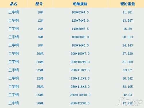 (2)规格:规格越大、重量越重的工字钢价格相对较高。