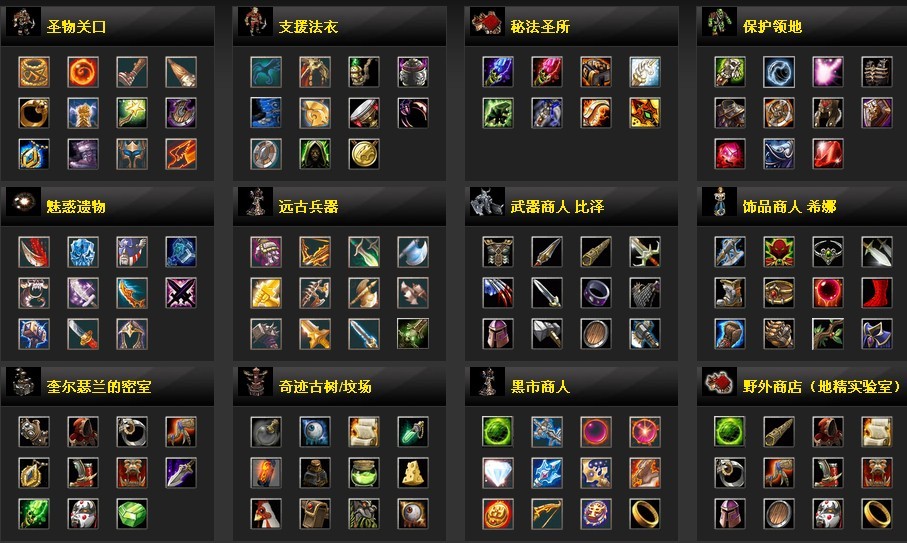 以下是一些常见的Dota装备及其属性和功能介绍(按照类别):
