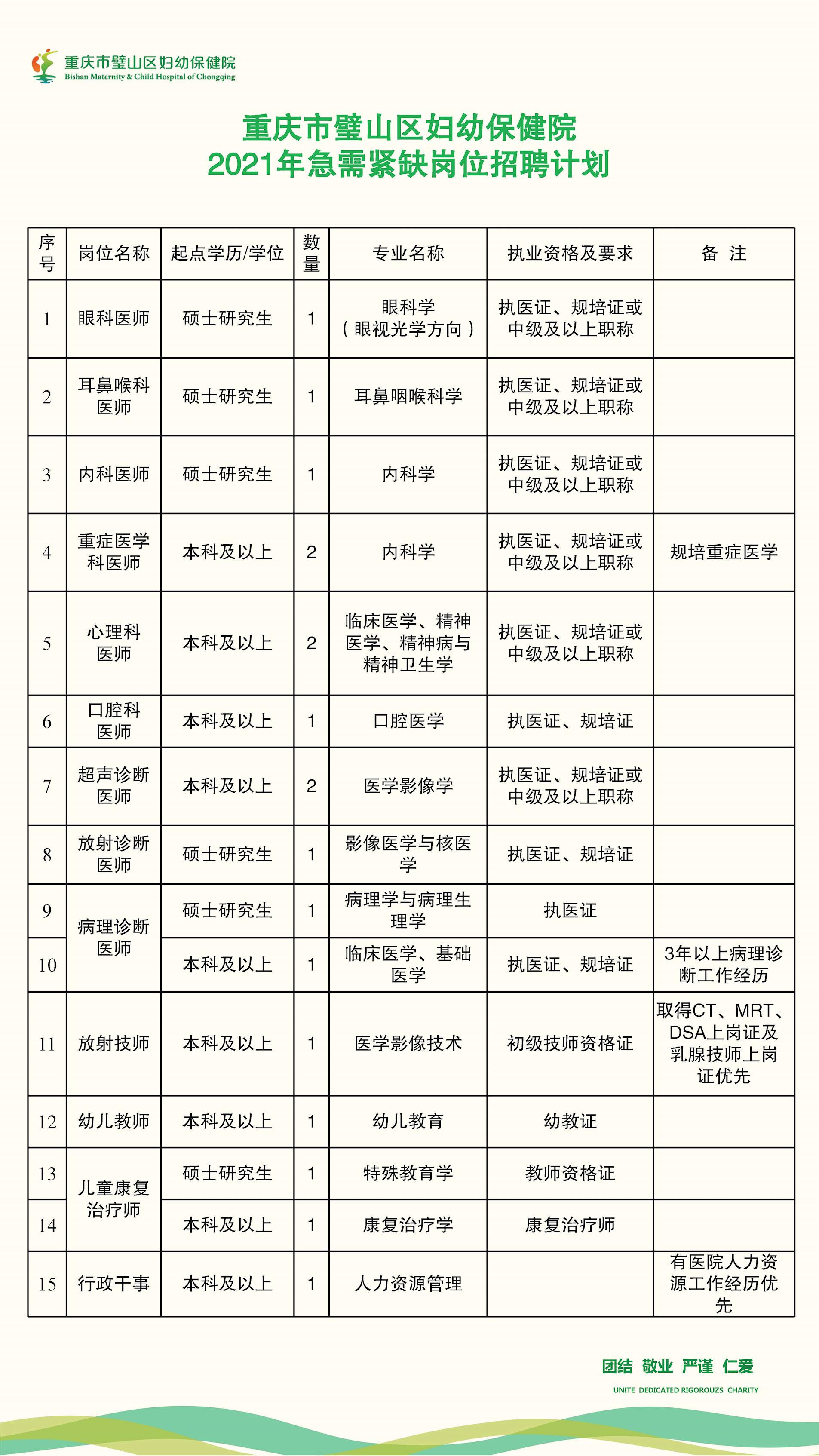 重庆B超医生招聘概况