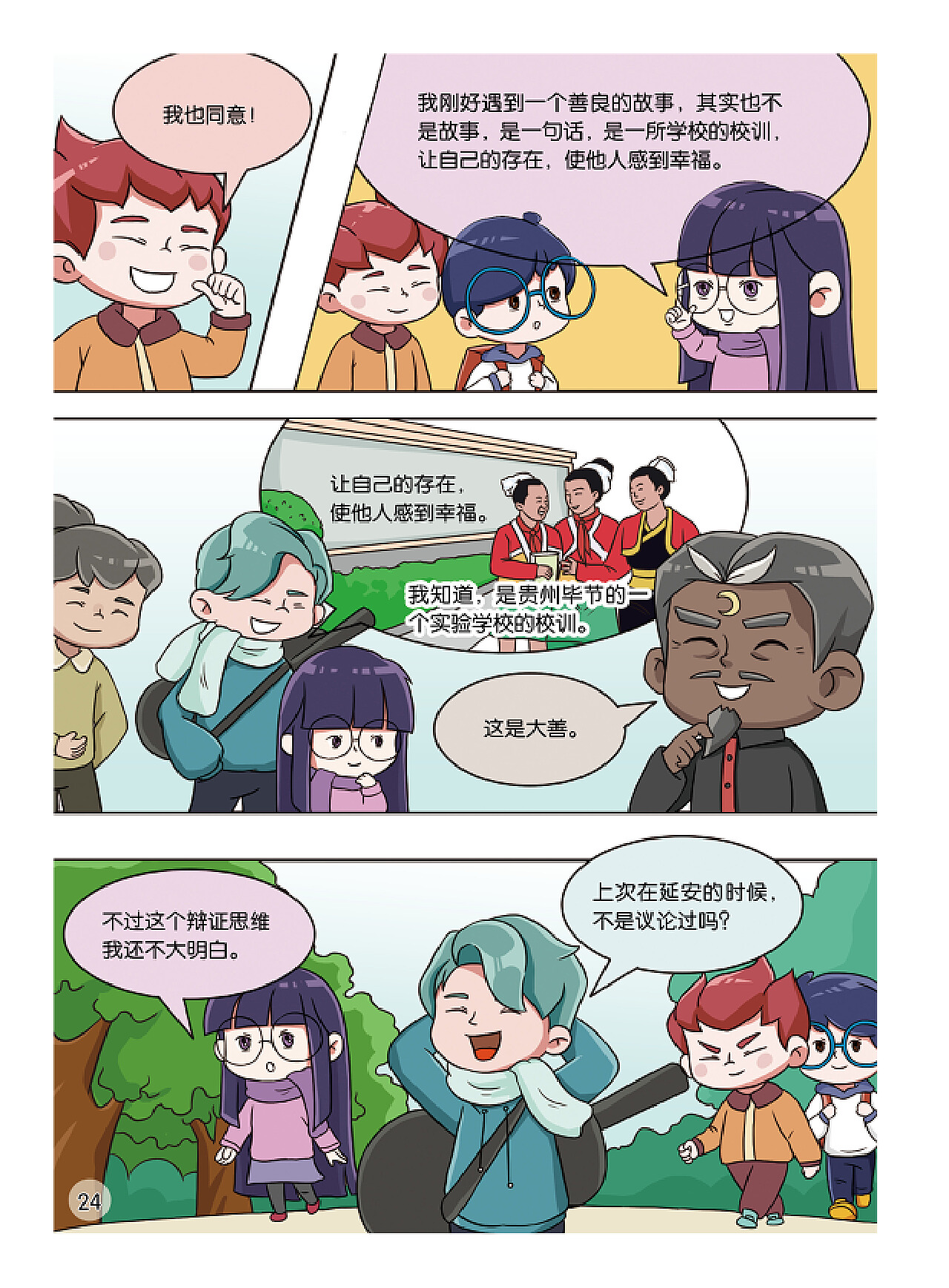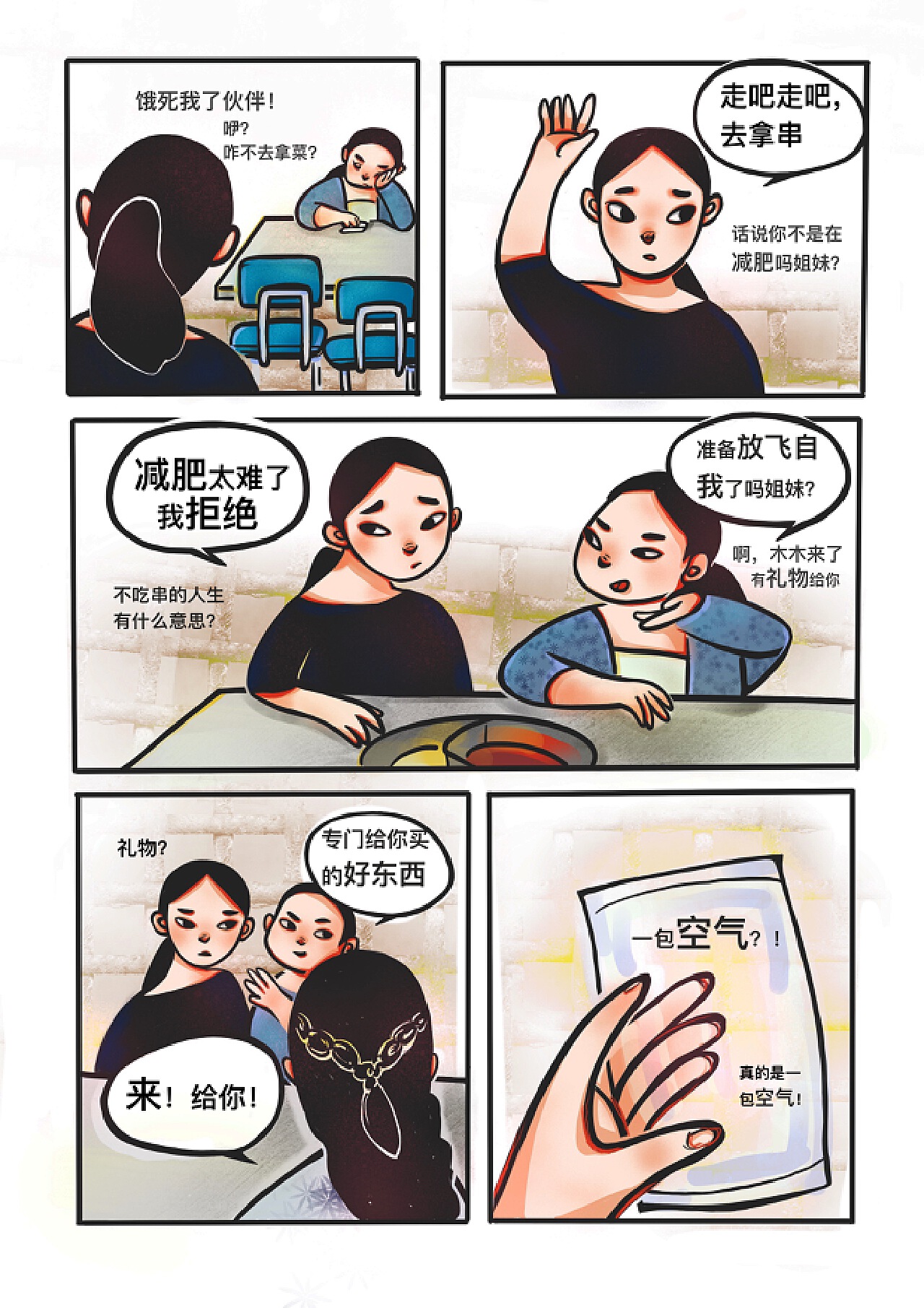 示例:绘制主角在教室中与同学们的互动场景,注意表情和动作的协调。
